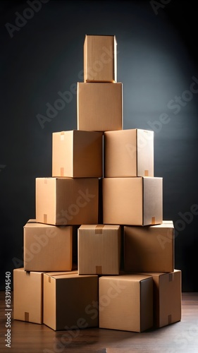 Obraz premium Stack of Cardboard Boxes Against Black Background