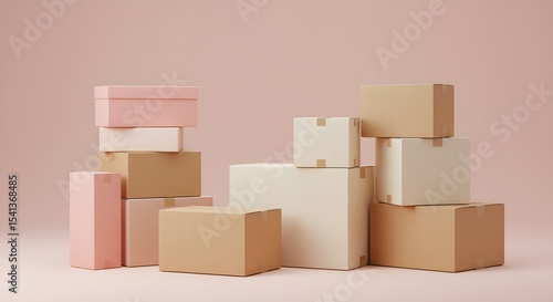 © Tri, Obraz premium Stack of Cardboard Boxes Packaging and Shipping Solutions