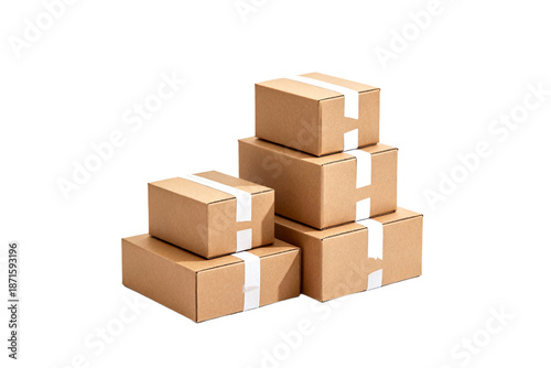Fototapeta premium Stack of Cardboard Boxes with White Tape