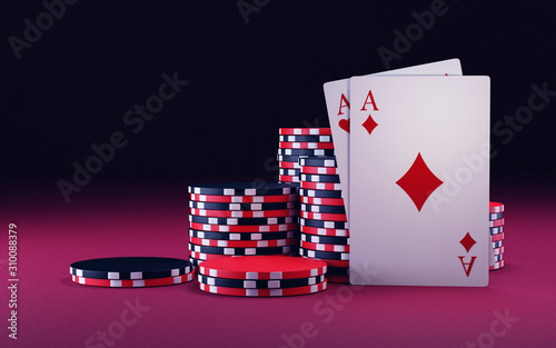 © M.a.u, Obraz premium Stack of chips and two aces. 3d illustration