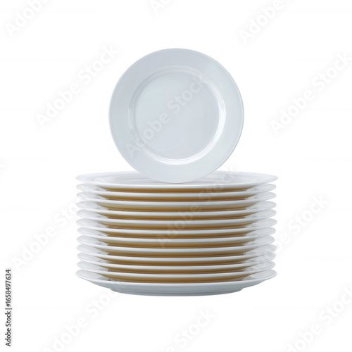 © Kamonwan, Obraz premium Stack of clean, white plates arranged neatly