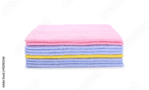 © New Africa, Fototapeta premium Stack of cleaning rags isolated on white