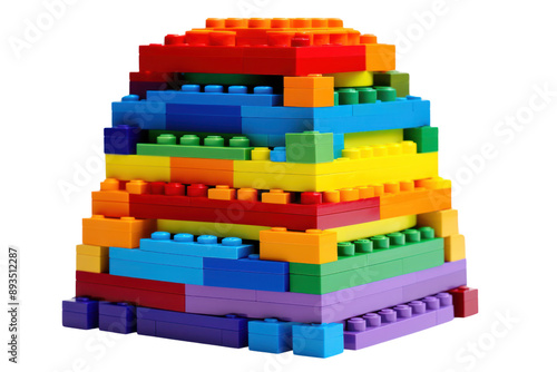 Fototapeta premium stack of colorful blocks arranged in a rainbow pattern, isolated on white background