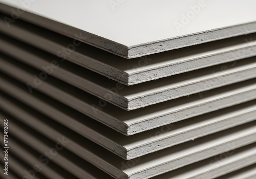 © Pixcellence, Obraz premium Stack of drywall sheets for construction projects and interior renovation needs