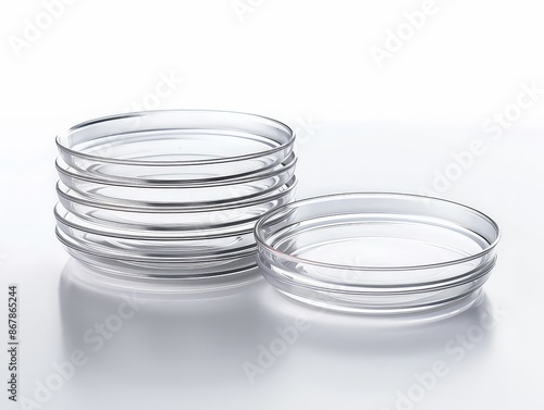 © Lamina, Obraz premium Stack of empty petri dishes, isolated on a white background to highlight their use in culturing and growing microorganisms.