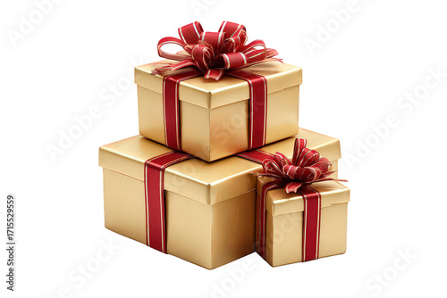 Obraz premium Stack of Gold Gift Boxes with Red Ribbons