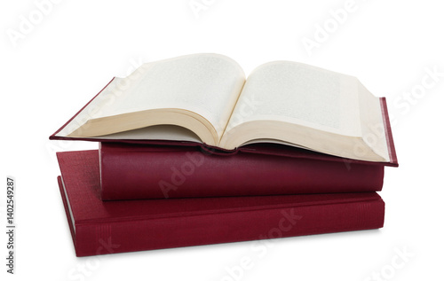 © New Africa, Obraz premium Stack of hardcover books isolated on white
