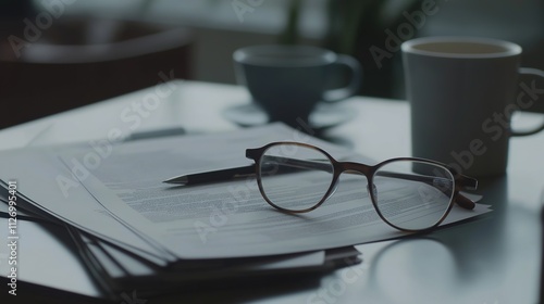 Fototapeta premium Stack of legal documents on wooden desk, symbolizing meticulous attention to...