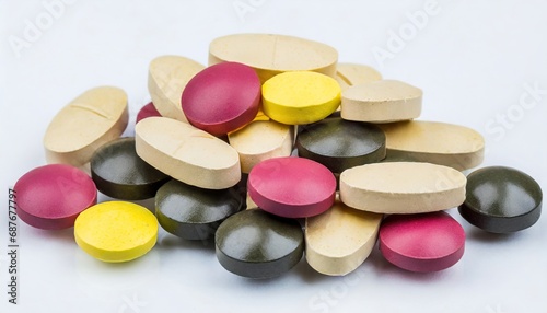 © Marko, Naklejka premium stack of multicolor pharmaceutical vitamin pills on isolated