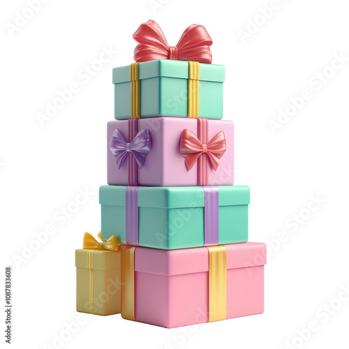 Fototapeta premium Stack of Pastel-Colored Presents with Bows