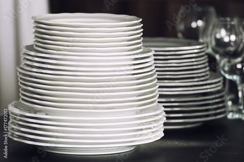 © Africa Studio, Obraz premium Stack of plates on table
