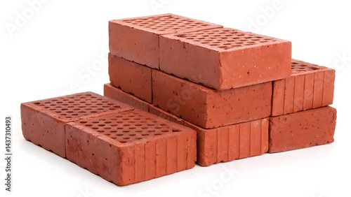© Musabbir Ahmed, Fototapeta premium Stack of red bricks isolated on white background