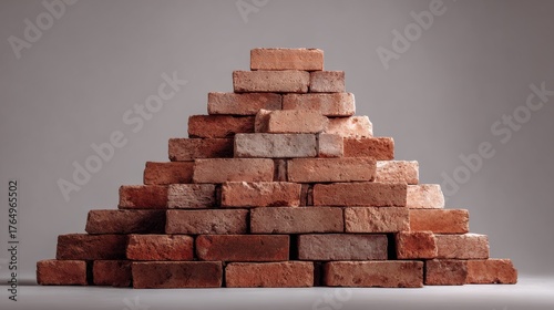 © Asmaa_Asmadi, Obraz premium Stack of Red Clay Bricks in Pyramid Formation