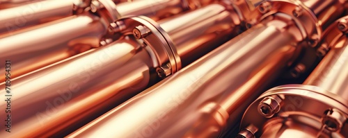Naklejka premium stack of shiny copper plumbing pipes on a white background.