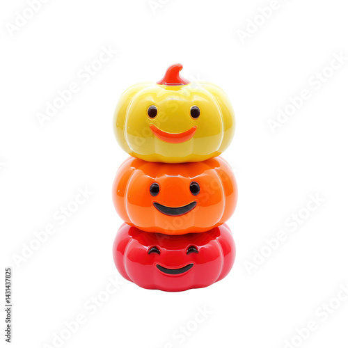 Fototapeta premium Stack of Three Smiling Pumpkins in Yellow, Orange, and Red
