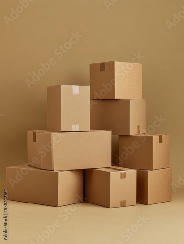 Fototapeta premium Stack of Unlabeled Cardboard Boxes on a Beige Background