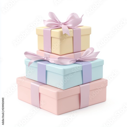 Fototapeta premium stack of wedding gifts wrapped in elegant pastel tones, isolated on white