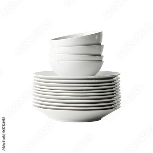 © chalindu, Obraz premium Stack of White Ceramic Plates for Kitchen and Dining