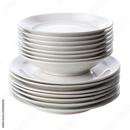 Obraz premium Stack of white plate isolated on transparent background