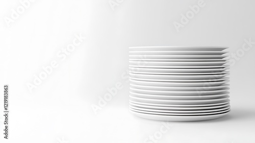 © SANDJAYA, Obraz premium Stack of White Plates on White Background