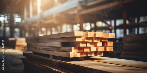 Obraz premium stack of wooden boards in a warehouse or factory.
