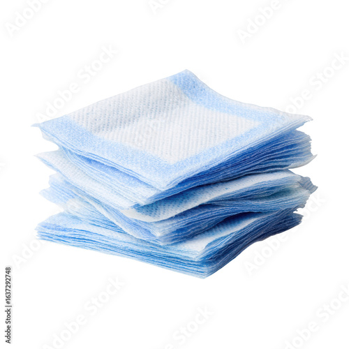 © Majnu, Fototapeta premium Stacked absorbent pads with blue borders white, Isolated On White, Png Transparent, Cut Out