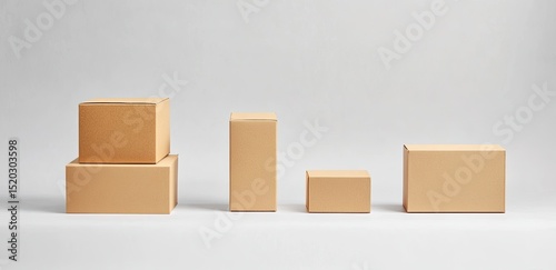 © risma, Fototapeta premium Stacked and assorted cardboard boxes