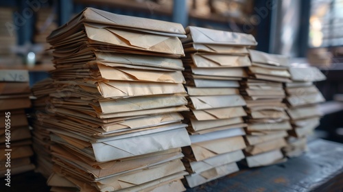 © mbah, Fototapeta premium Stacked antique books aged paper weathered covers.