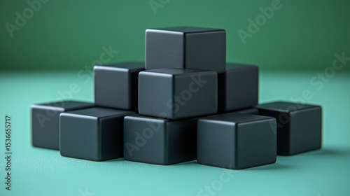 Obraz premium Stacked black cubes on mint green background