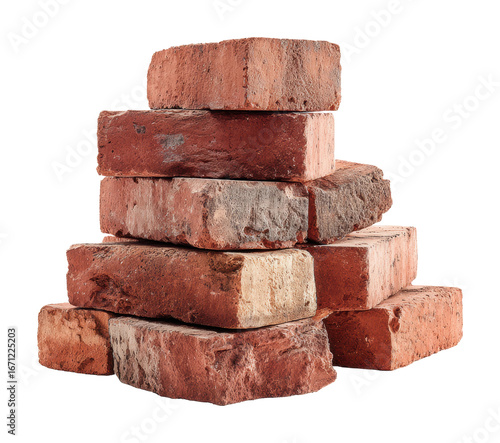 © Nadya, Obraz premium Stacked bricks for construction workshop isolated on transparent background