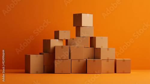 © Vika art, Obraz premium Stacked cardboard boxes.
