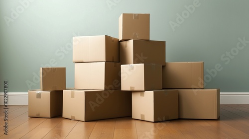 Fototapeta premium Stacked cardboard boxes in empty room