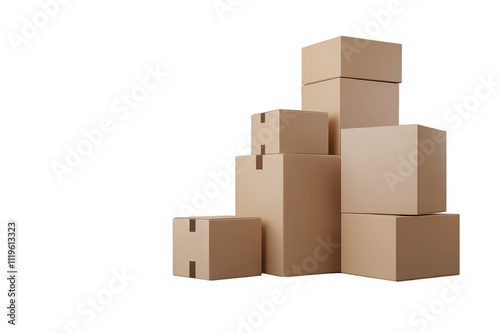 Fototapeta premium Stacked cardboard boxes on transparent background representing logistics and shipping