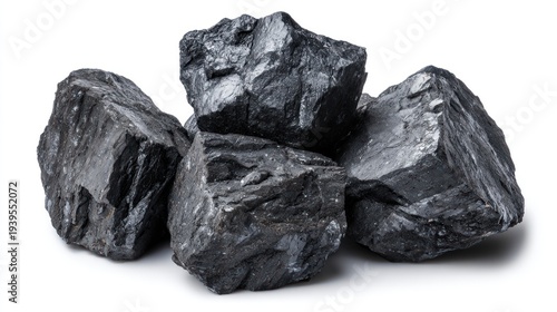 © afridwi, Obraz premium Stacked coal rocks against white background