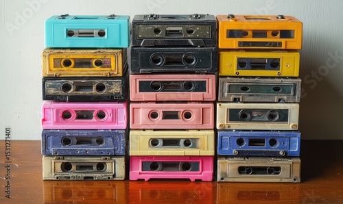 Obraz premium Stacked colorful audio cassettes