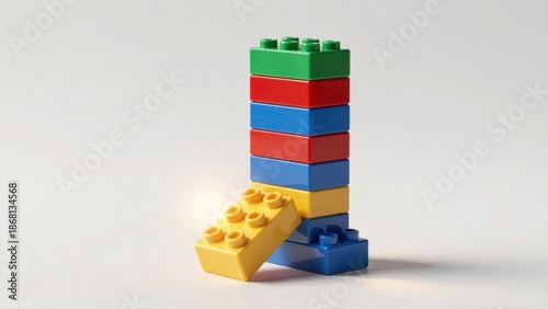 Fototapeta premium Stacked colorful Lego blocks with leaning brick