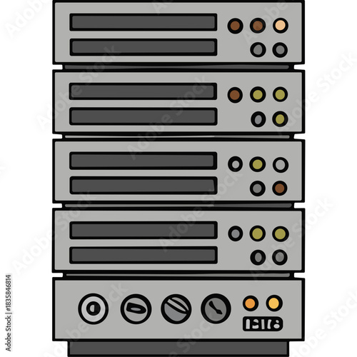 Fototapeta premium Stacked Computer Server Racks With Indicator Lights And Control Dials On A...