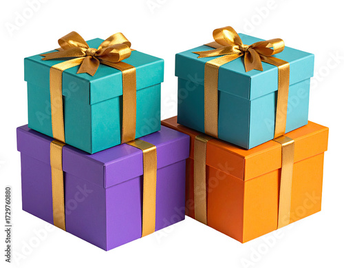 © Faki, Fototapeta premium Stacked gift boxes in vibrant colors (3)