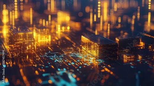 Fototapeta premium Stacked gold bars with a glowing financial chart overlay, symbolizing stable...