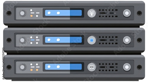 Obraz premium Stacked Gray Server Units with Blue Displays