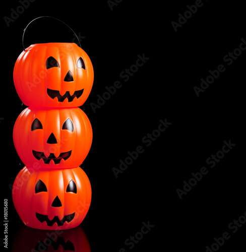 © Michael Flippo, Fototapeta premium Stacked jack-o-lanterns on black