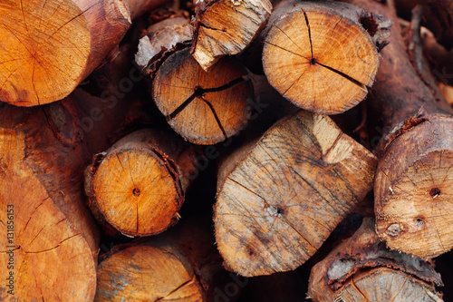 © jeremiques, Naklejka premium Stacked old wooden lumber , closing up