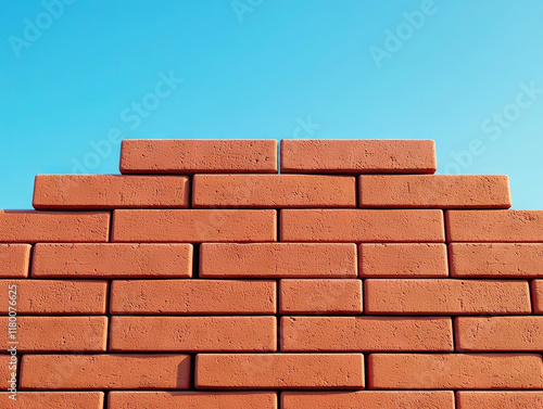 Obraz premium Stacked red bricks forming solid wall against clear blue sky during daylight