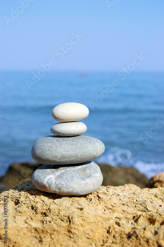 © Angel_a, Fototapeta premium stacked seashore pebbles