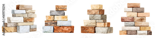 © T Studio, Obraz premium Stacked Stone Textures Set Isolated on White