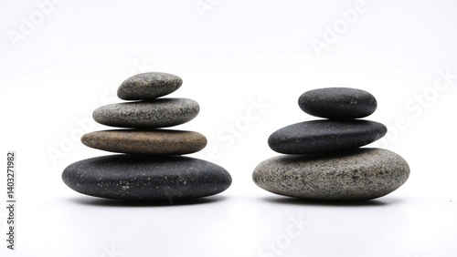 Fototapeta premium Stacked Stones Balance Still Life Isolated on White Background Symbol