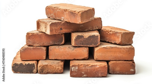 © Ale, Obraz premium Stacked terracotta bricks against white background (1)