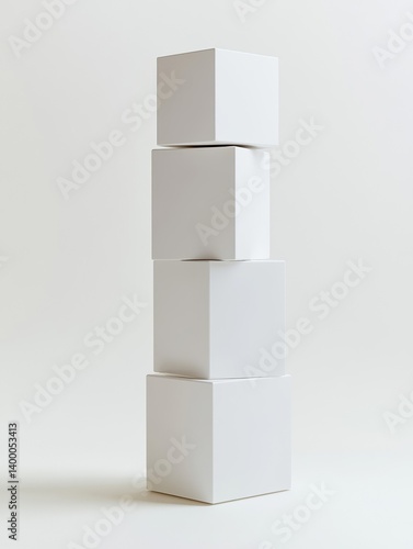 Obraz premium Stacked white cubes: simple geometric composition, clean design, minimal...