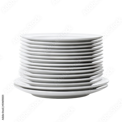 © arthit, Obraz premium Stacked White Plates on a Plain Background Ideal for Culinary and Restaurant Related Imagery