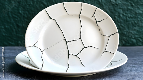 © RadenMas, Naklejka premium Stacked white plates with crackle pattern